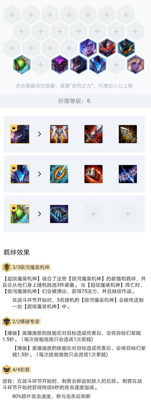 〖Five〗、在云顶之弈游戏中,暗星羁绊是一种特殊的羁绊组合,需要通过特定的装备合成来实现。暗星羁绊的合成需要拳套和金铲铲这两种基础装备。将拳套与金铲铲结合,不仅可以为你的英雄提供额外的攻击速度和攻击特效,还能让你的英雄成为暗星羁绊的一员。