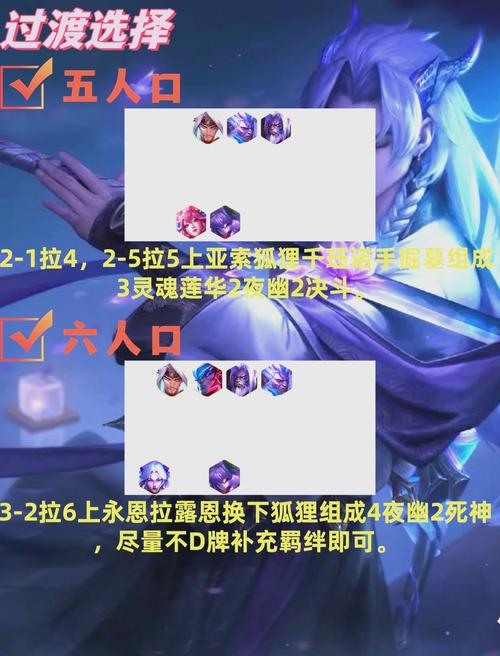 〖Five〗、注意观察是否有同行竞争,若有,需快速提升人口以保持竞争力。- 阵容运营 重点是尽快找到核心角色的三星。在7人口时,如果血量允许,可以大D搜寻三星锁血。遇到竞争时,需采取熬同行策略。7级阵容成型后,战斗力不俗。