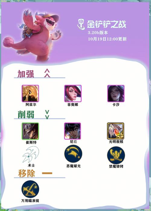 金铲铲之战S5上分技巧详解:版本改动理解 新增与移除英雄:S5版本新增了三个英雄,同时移除了卢锡安、挖掘机和狼人。新增英雄中,大嘴可以作为主输出位置,而另外两个秘术师为低费卡,使用上可能不那么突出。羁绊调整:新增了秘术师羁绊,并且引入了豪侠,豪侠可以随机掉落装备给妮蔻。