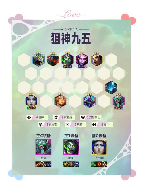 金铲铲之战圣盾狙神阵容的装备搭配如下:核心英雄装备搭配 厄运小姐(女枪):作为阵容中的法术输出核心,推荐装备为青龙刀以增加技能释放频率,法爆提升技能伤害,第三件可以选取无尽、巨杀或大天使,根据对手阵容灵活选取,以最大化输出能力。