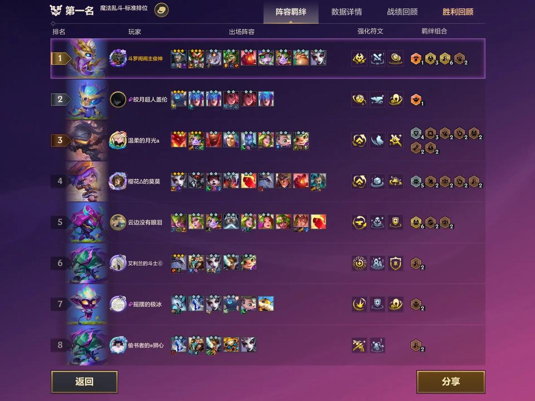 〖One〗、圣贤:婕拉、皎月、莫甘娜、孙悟空。战斗开始时,为前2排友军提供全能吸血,为后两排友军提供法强。 天将:卡兹克、墨菲特、妮蔻、奇亚娜、索拉卡、孙悟空。天神弈子获得独特增益,效果随星级提升。装备选取 主C瞎子:饮血、泰坦、无尽。备选装备为正义夜刃,最后一件可根据实际情况灵活选取。