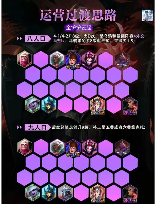 “双龙骑脸”阵容在金铲铲之战中确实非常强势,是一套有望稳吃鸡的T0阵容。以下是关于该阵容的详细解阵容核心:主力输出:星界龙神和逆鳞战姬。这两者是阵容的主要伤害来源,一旦装备成型,能够打出惊人的伤害。阵容构成:以6法师为基础,如果条件允许,甚至可以提升到9法师,以最大化法术伤害。