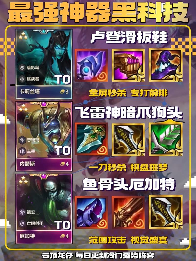 〖One〗、优先合成金克丝的装备,然后有肉装合肉装多余的散件直接给极客其他旗子,尽可能保证每一个极客旗子都有一件散件。8-9级的选取非常多,塔姆来的早8级就可以上,到了9可以上维克托等提升阵容上限,一切都是为了吃鸡而增加阵容上限。