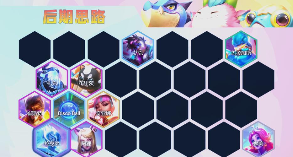 〖One〗、极客九五阵容 核心思路:利用极客羁绊快速获取装备和金币,通过经济优势快速升级人口,最终组成九五至尊的豪华阵容。关键英雄:维克托、金克丝、杰斯等五费卡,以及前期过渡用的极客英雄如艾克、吉格斯等。装备推荐:优先合成无尽之刃、巨人捕手之矛等攻击装,以及蓝霸符等回蓝装。