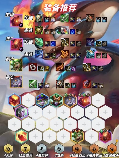 金铲铲之战赌龙女阵容装备搭配详解 阵容搭配:核心英雄:逆鳞战姬(龙女)、星界龙神、南天之怒、西斗之飒、皮城执法官、狻猊之心、齐天大圣、虚空恐惧。核心羁绊:3换形、4狂野、4斗士、2龙。这个羁绊组合能够提供强大的生存能力和输出能力,让龙女在战场上更加游刃有余。