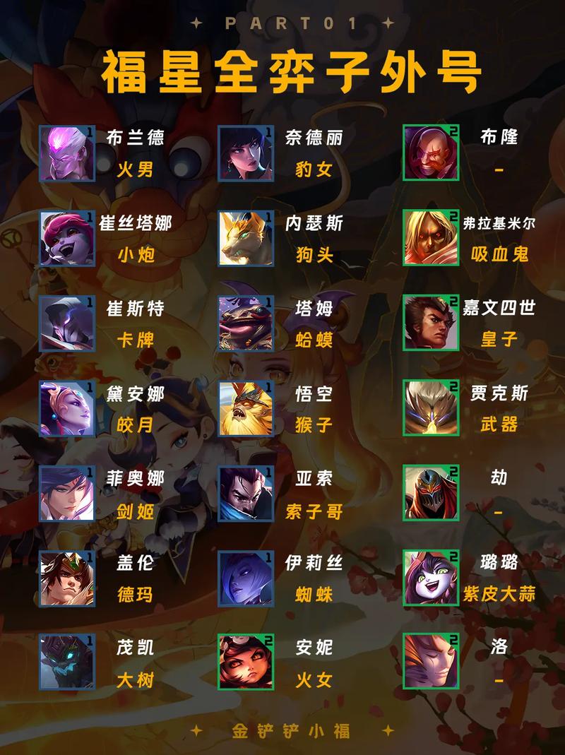 【s4出装大全】金铲铲之战福星版本全英雄羁绊图福星版本全英雄羁绊: 在1月25日将会上线福星版本,也就是云顶之弈里的S4版本。这个赛季是很多玩家都很怀念的赛季,其中的天选和福星很有意思。在游戏中每个赛季都会有不同的羁绊,福星羁绊是非常受欢迎的羁绊之一。