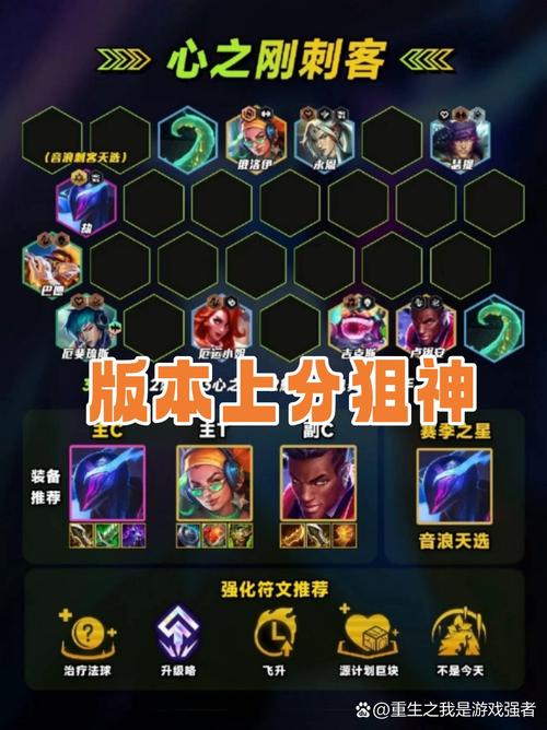 装备顺序:铲子、攻速、全套。铲子开启6强袭,阵容提升效果显著。辅c金克丝捡破烂,多余肉装给予布隆、机器人及刀妹进行极客偷装备。
