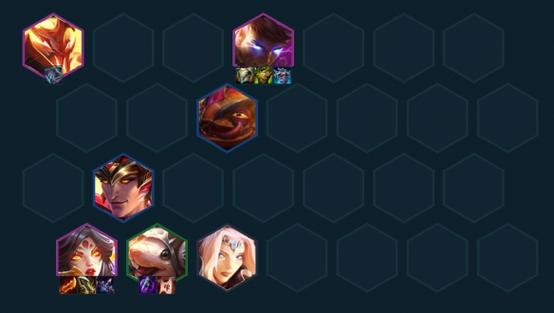 猪妹可以考虑换成其它2星橙卡如亚索和索拉卡,有冒险家纹章可以给龙女,能够享受到冒险者羁绊提供的高额属性加成。注意霞的对位不要被刺客切,霞和图奇贴贴,其它根据局势做调整。