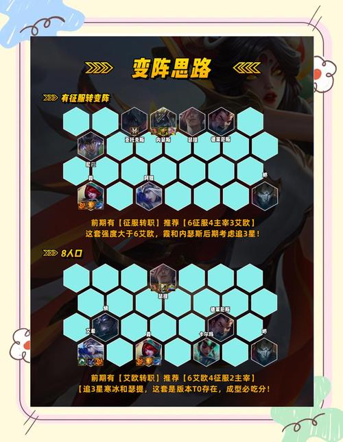 阵容组成: 霞作为阵容的核心英雄,承担主要输出任务。其他关键英雄包括亚索、人马等,他们分别承担前排坦克和控制的角色。此外,可以根据实际情况搭配其他英雄,如双城剑士、冒险家等,以增强阵容的多样性和适应性。装备推荐: 霞的装备选取至关重要。