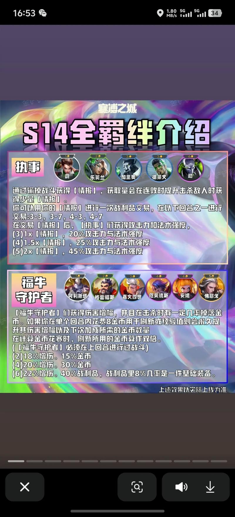 〖One〗、金铲铲之战S14赛季的羁绊详情如下:主要羁绊类型时空裂痕:羁绊效果:该羁绊主要围绕英雄之间的时空连接,提供额外的属性加成或技能效果。关键英雄:包括能够操控时空的英雄,如拥有时间回溯能力的角色。福牛守护者:羁绊效果:当福牛守护者们在战场上并肩作战时,他们将获得额外的生命值和法术强度加成。
