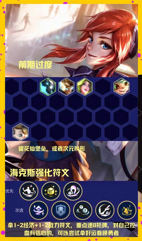 〖Two〗、主宰尼菈核心为6主宰羁绊,需主宰文章纹章支持。尼菈必做火炮,沙皇副C需纳什之牙+法爆,狗头携带薄暮法袍提升尼菈输出。过渡依赖2主宰2挑战2祖安,打工核心为金克丝+狼人+莎弥拉,优先连胜。崔斯特传说之力强化装备获取,城邦优先选经济类。
