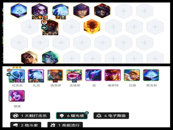 〖Three〗、金铲铲之战s10爵士女枪95阵容的搭配方法如下:阵容构成 所需弈子:厄运小姐、俄洛伊、艾克、崔斯特、布里茨、卢锡安、古拉加斯、璐璐、巴德。组成羁绊:4爵士乐、3迪斯科、3法师、2耀光使、2秘书护卫、2格斗家、1大触打击乐。