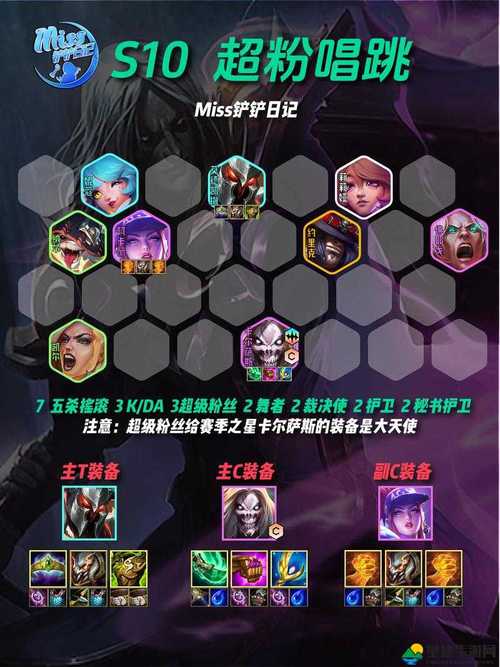阵容核心英雄及装备 主C阿狸:必备装备:变异战士转职装备,这可以大幅提升阿狸的输出能力和生存能力。输出装备:蓝霸服或青龙刀,提供技能急速,让阿狸能更快地释放技能;巨人捕手或海克斯科技枪刃或法爆,增强阿狸的技能伤害和吸血能力。