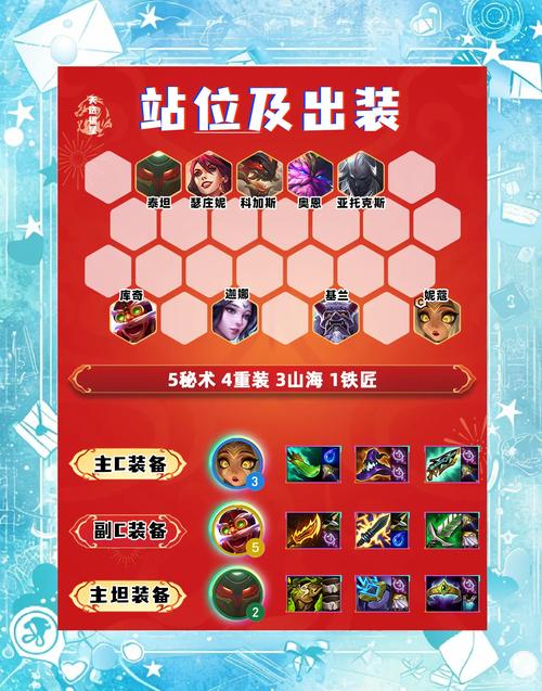 阵容组成与羁绊 阵容组成:妮蔻、安妮、崔斯特、艾克、蕾欧娜、迦娜、娑娜、阿利斯塔、拉克丝。这套阵容涵盖了多个关键英雄,能够形成强大的战斗力。阵容羁绊:6灵能使、3秘术卫士、2星之守护者、2福牛守护者、1气象主播。这些羁绊能够为阵容提供额外的属性加成和技能效果,进一步提升整体强度。