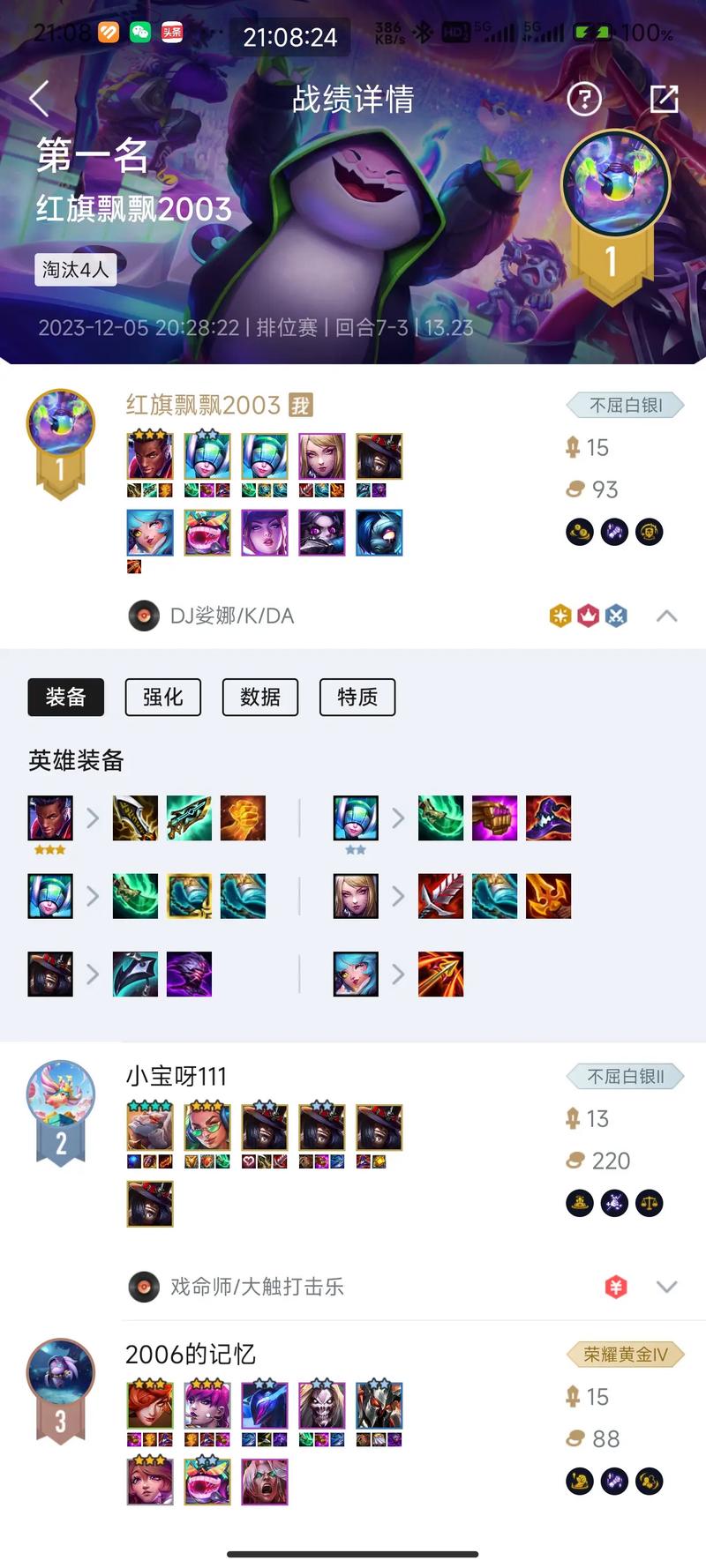 〖Four〗、阵容组成:永恩、刀妹、武器、盲僧、肾、猫、霞、千珏、天使。阵容强度:成型必吃分,质量够高能吃鸡。核心装备:羊刀、火炮、旗子(千珏/霞)运营思路:①如果开局是弓的话,尽量追求连胜,如果不需要抢装备的话。②开局可以选取三国豹女带装备,也可以看天选情况来决定。