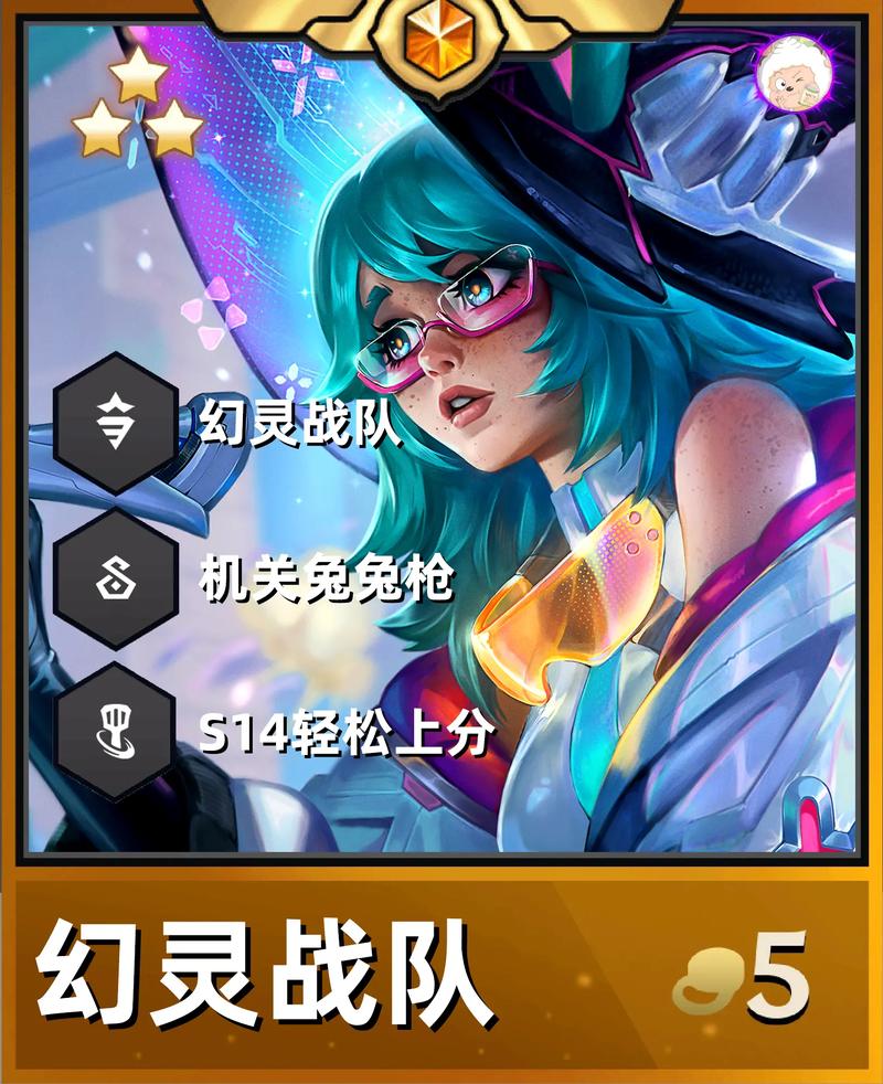 幻灵战队阵容玩法攻略阵容推荐羁绊组成:5幻灵战队 3星之守护者 1精英战士 2护卫 2决斗大师 2淘气包推荐理由:今天给大家推荐的阵容是幻灵战队。从单卡方面来看,厄运小姐作为拥有幻灵战士和精英战士双重输出羁绊的四费卡,能够利用她AOE大招和斩杀效果快速清场。