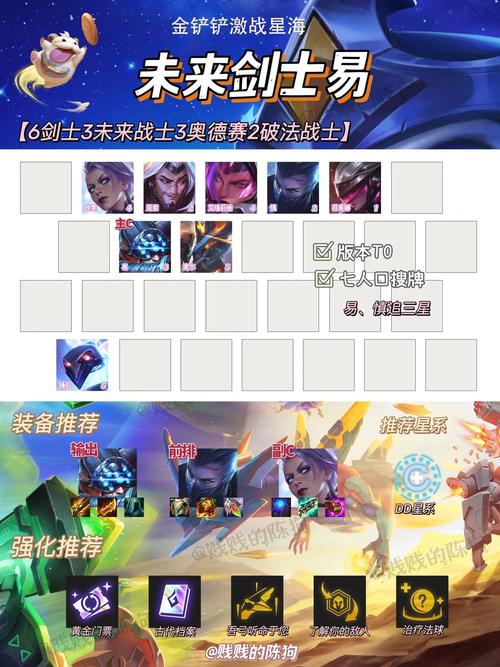 〖Three〗、阵容搭配:神龙狗头的核心阵容包括狗头、盲僧、狗熊、洛、瑟提、卡尔玛和亚索。这些英雄能够形成强大的神龙羁绊,提升整体战斗力。在8人口时,可以考虑补上秘书或者强力五费卡,进一步增强阵容实力。到了9人口,可以上泰拉,让狗头站在泰拉的伤害减免格子上,提升生存能力。