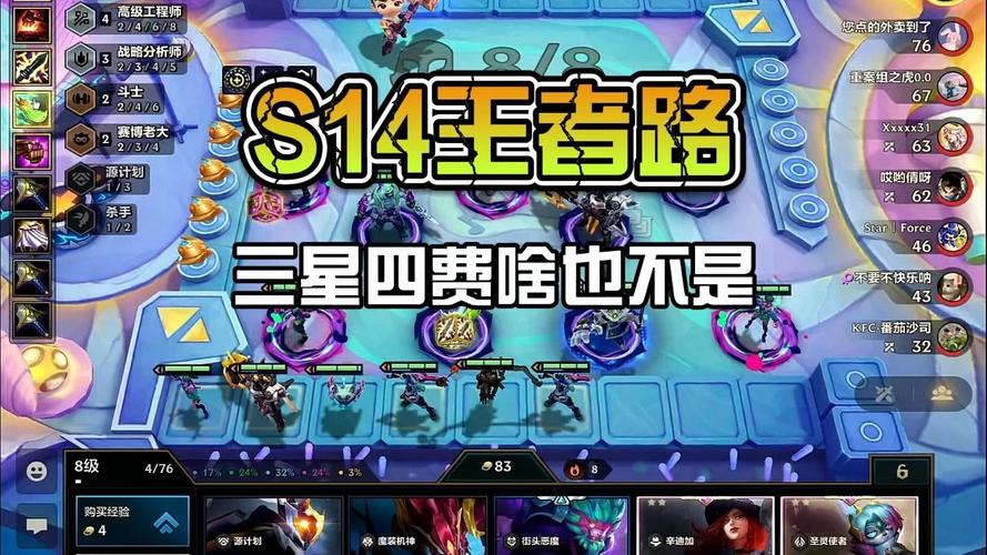 〖Four〗、《金铲铲之战》s14阵容推荐如下: 新手必学200层霸王龙阵容 阵容构成:该阵容主要以能够快速成长并具备高生存能力的英雄为主,如霸王龙等。通过合理的装备分配和技能升级,可以轻松达到200层。阵容特点:生存能力强,输出稳定,适合新手玩家上手。