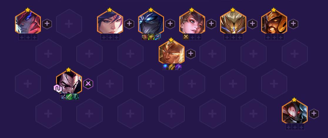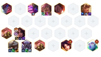 推荐阵容如下:核心英雄:剑姬(决斗大师或玉剑仙)、拉克丝、莫甘娜、娜美(或决斗大师替换)、艾瑞莉娅(刀妹)、猫咪、迦娜(风女)天选剑姬:装备可以选取科技枪、狂徒铠甲和大天使,或者正义之手(3件或2件搭配大天使之杖),泰坦的坚决也是不错的选取。