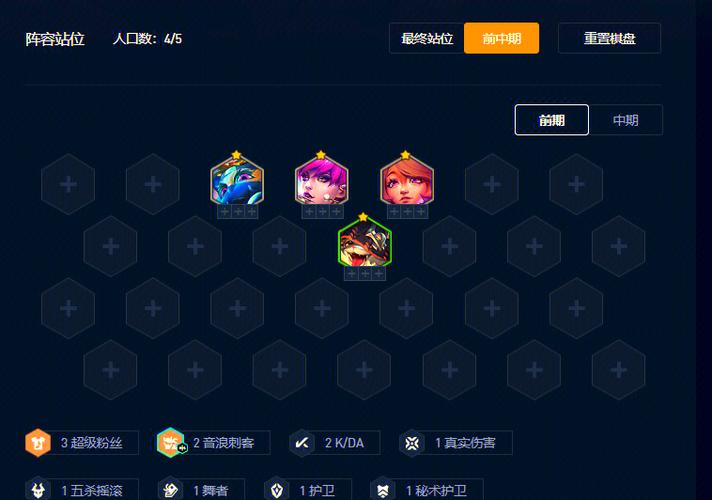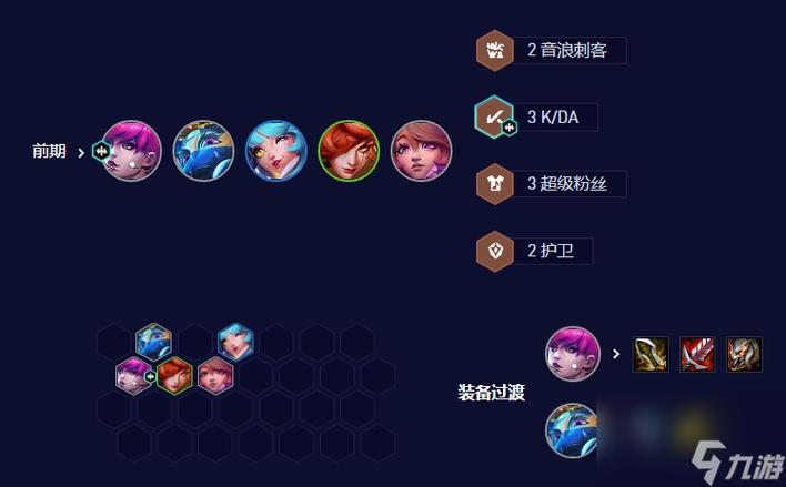 金铲铲之战S10赌卡特玩法介绍:阵容介绍 羁绊组成:4音浪刺客、3KDA、3乡村音乐、2护卫、2电子舞曲、2裁决。阵容思路:以2费音浪刺客卡特琳娜为核心,搭配乡村羁绊组合,后期可加入电子舞曲羁绊的劫等英雄,提升阵容的控制和伤害能力。羁绊详解 K/DA:提供生命值、法术强度和攻击力加成,K/DA弈子获得双倍加成。