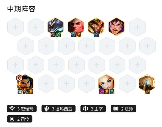 〖Three〗、阵容组合 神射薇恩阵容由以下英雄组成:蛇女、瑞雯、锤石、狍子、提莫、萝莉、薇恩、烬。核心羁绊是6夜幽与4神射。薇恩玩法 装备选取:首件装备:羊刀,确保攻速,这是薇恩输出的关键。第二件装备:续航装,如饮血剑或正义之手,以持久输出为主。