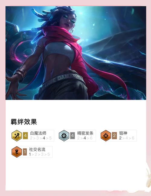 〖Five〗、金铲铲之战白魔辛迪加怎么玩?“白魔辛迪加”是很适合上分的套路,虽然吃鸡率不高,但用来上分很稳定,适合萌新棋手。下面带来白魔辛迪加阵容详解,各位朋友们们快来看看吧。白魔辛迪加阵容攻略阵容基础组成4保镖,4白魔,3辛迪加(不开也没什么);保镖转职多的尽量开8保镖,6也可以。