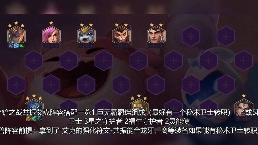 棋子选取上,初期可以用两格斗斯卡纳和塔姆做前排,后排则有赛娜、金克丝和麦林炮手或蕾欧娜、宝石做护卫,若无法获得炮手,可考虑伊泽瑞尔和图奇做迅捷猎手。随着游戏进程,逐渐替换为龙神阵容,提升整体阵容的战斗力。