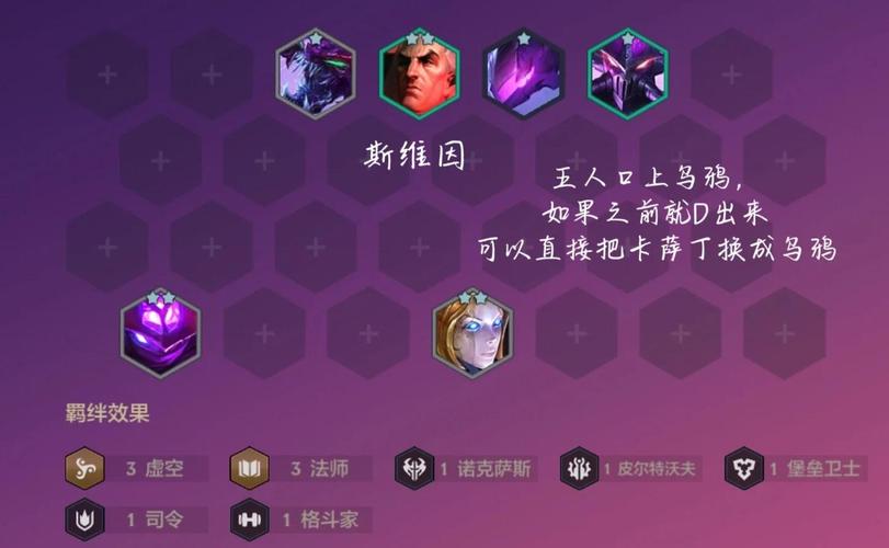 《金铲铲之战》S12六女巫阵容玩法攻略 阵容组成 核心英雄:蛇女、狗头、卡尔玛、莫甘娜、剑姬、妮蔻、时光、波比。这套阵容以蛇女为核心输出,狗头作为前排坦克,其余英雄提供控制、辅助和输出能力。