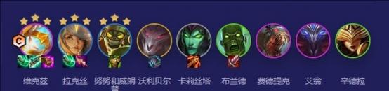 〖Two〗、云顶之弈S5赛季引入了丧尸羁绊,这个新的羁绊由卡莉斯塔、布兰德、瑞兹和努努四位英雄组成。丧尸羁绊的关键在于转职装备,需要“金铲子+暴击拳套”,其中一件装备必须是“黑暗装备”才能激活丧尸转职,否则会变成刺客的转职装备。丧尸羁绊的效果是,友方英雄阵亡时,会唤醒一个名为“缝合巨怪”的生物参与战斗。