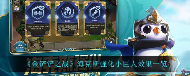 〖Three〗、”小巨人(黄金):你的小小英雄体型变大,并恢复 35 点生命值。你可以超出 100 点生命值上限。设计师简评:“当一名玩家在备战阶段使用这种强化后,排名一跃而起,会引来无数个问号,我就爱这种感觉。虽然这种排名的变化在“代谢增速器”海克斯强化中偶尔也会出现,但远没有这么频繁。
