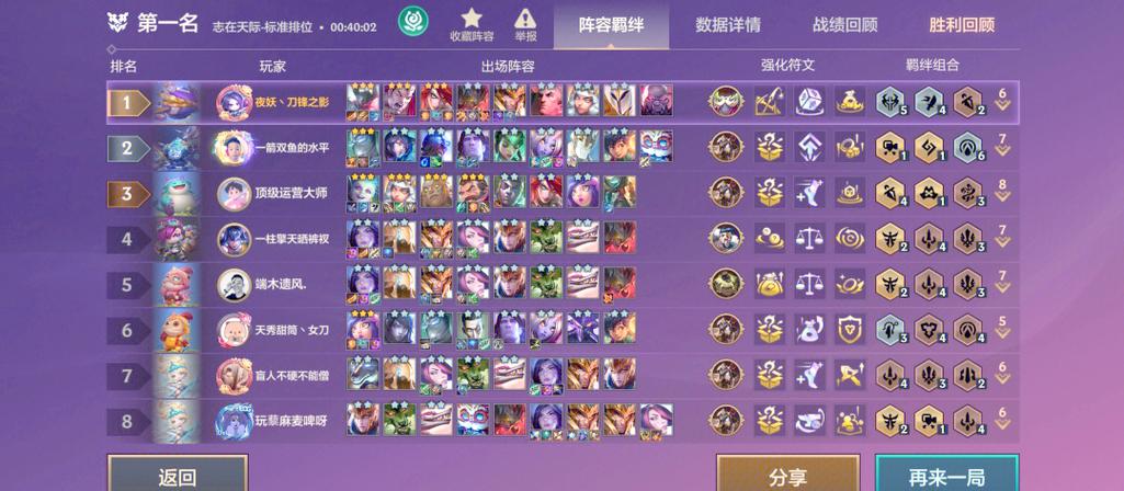 优先为德莱厄斯和卡特琳娜分配装备,确保双C的输出能力。前排装备可以考虑给乌鸦,如石像鬼石板甲、狂徒铠甲等,增强前排坦度。符文选取:强化符文推荐选取全面称霸、飞升、三费小组、珠光莲花等,增强整体阵容的战斗力。装备百宝袋或其他战力强化符文也是不错的选取。
