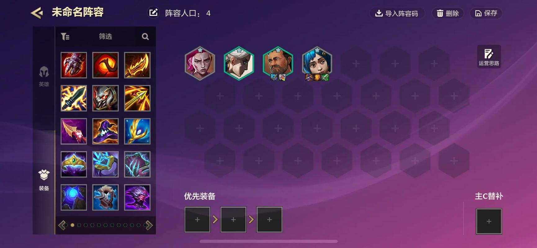 〖One〗、劫:刚需无尽之刃和正义之手,这两件装备搭配3艾欧尼亚羁绊可实现满暴击。卡特琳娜:若有裁决转职优先给予,其余装备选取伤害和续航类,如珠光护手、巨人捕手、蓝霸符或科技枪等。其余英雄:克烈和瑟提若能追出3星,可捡拾剩余装备,提升整体战斗力。