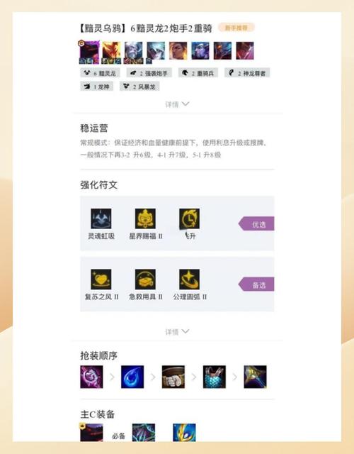 〖One〗、追求三星顺序:格雷福斯、赫卡里姆、诺姆希。 2阶段:21升四人口,使用守卫+怒龙或守卫+迅捷射手过渡。25升至五人口,补充二暗灵龙+二枪手,确保战斗力。 3阶段:32升六人口,增加泽里或努努,调整至突击炮手或重骑兵羁绊。 4阶段:35或41升七人口,若前期质量低且血量低于60,则提前升七人口,确保格雷福斯稳定出阵。