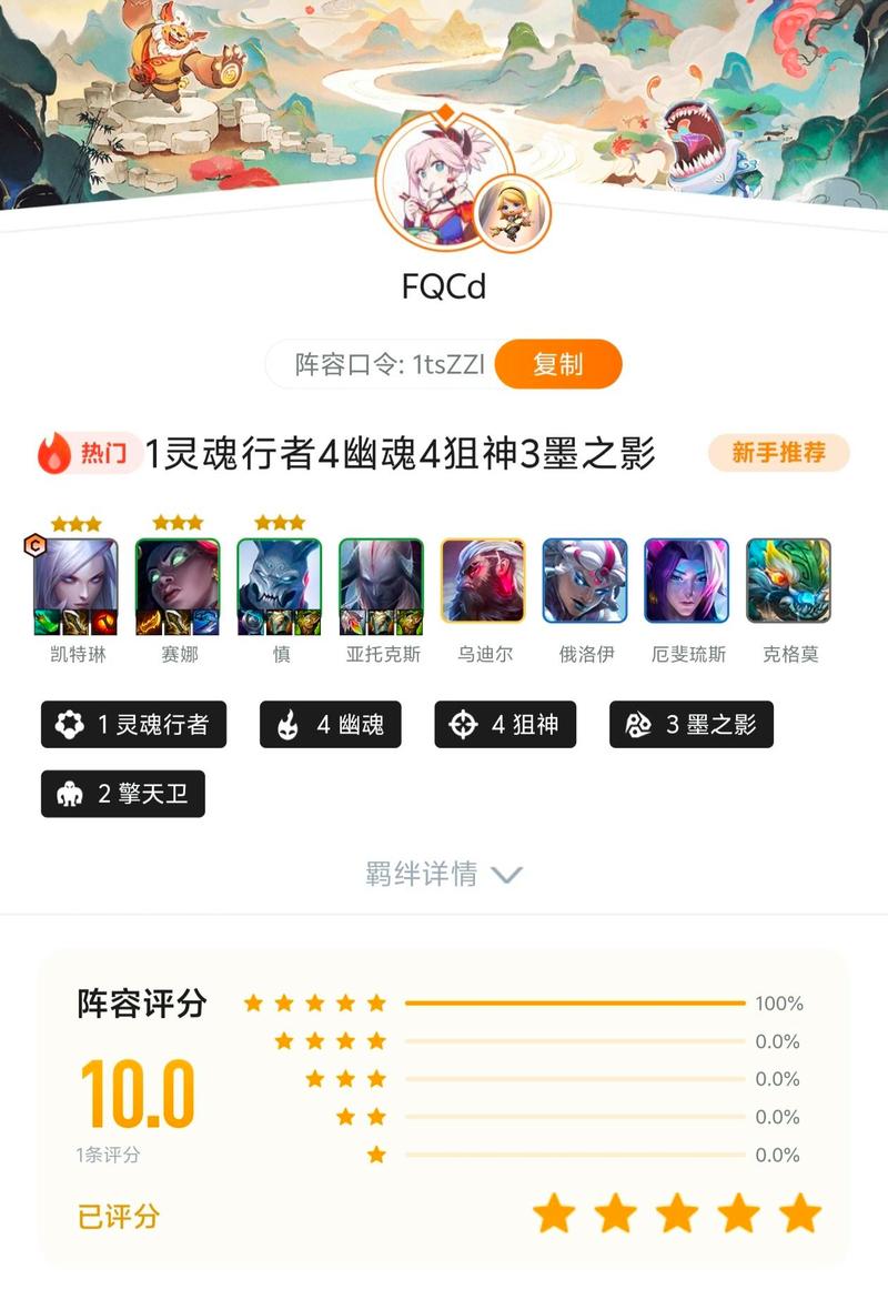 〖Four〗、阵容组成 核心成员:崔斯特(卡牌大师)、洛里斯(洛)、麦迪、斯特卜、卡密尔、安蓓萨、蔚、凯特琳(女警)羁绊组合 主要羁绊:8执法官,提供强大的控制与输出能力。次要羁绊:2狙神(凯特琳),增强远程输出;2讯击战士,提供额外的攻击速度与移动速度;1外交官,增加阵容的灵活性。