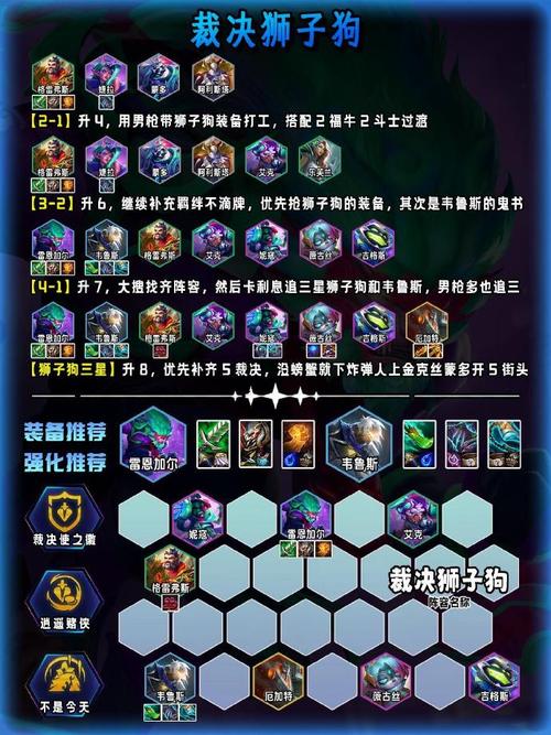 阵容搭配 核心羁绊:五杀摇滚『5』+超级粉丝『4』+刀锋领主『3』+秘术卫士『2』+护卫『2』。这套阵容以五杀摇滚为核心,通过超级粉丝提升整体输出,刀锋领主增加伤害,秘术卫士和护卫提供保护和控制。