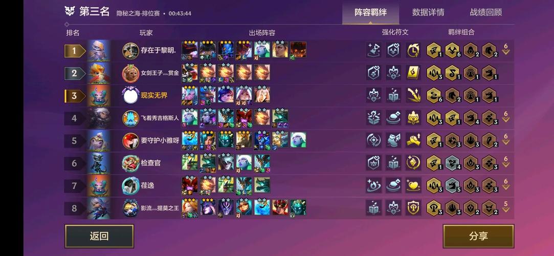 阵容推荐与羁绊组成 羁绊组成:6天神、4摄魂使、2玉剑仙、2决斗大师。强化符文:推荐选取珠光莲花、断魂夺魄、天神时代、天神启示等战力提升类符文。阵容前提:需要有天选内瑟斯(摄魂或天神均可),并能合法爆、泰坦、破防者等装备,同时拿到上述推荐的强化符文。