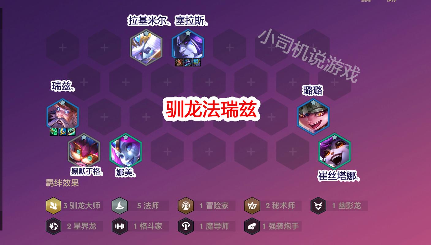 阵容介绍:希瓦娜、妮蔻等英雄,拥有4换形师、3玉龙等羁绊。阵容分析:希瓦娜加强后,可秒杀后排,克制大部分阵容。快乐风男 阵容介绍:石傲玉、亚索等英雄,形成9玉龙、3神龙尊者等羁绊。阵容分析:吃分能力强,下限高,上限低,适合保分。