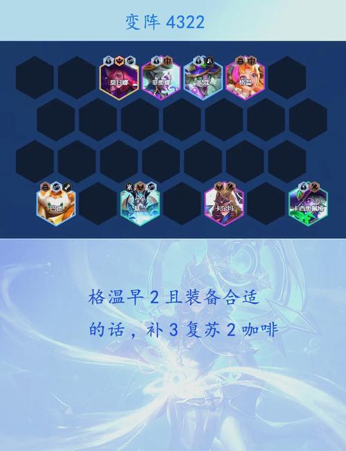 推荐选取诅咒女巫之徽、羁绊追踪者、释放野兽等强化符文,以增强阵容的整体实力。站位选取:根据对手的阵容和站位进行调整,确保菲奥娜等核心输出角色能够安全输出,同时利用堡垒卫士的羁绊效果提供额外的保护。玩法思路:前期可以利用强势的诅咒女巫羁绊进行过渡,尽快合成菲奥娜的核心装备。