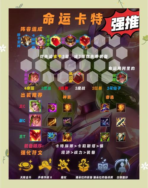 金铲铲之战霓虹之夜剑士大虫子阵容的装备搭配如下:主坦大虫子(科加斯)装备 核心装备:无尽之刃+分裂弓无尽之刃:提供高额的攻击力和暴击伤害,使大虫子在攻击时能够造成更高的单体伤害。分裂弓:使大虫子的攻击能够分裂,对多个敌人造成伤害,增加其范围伤害能力。