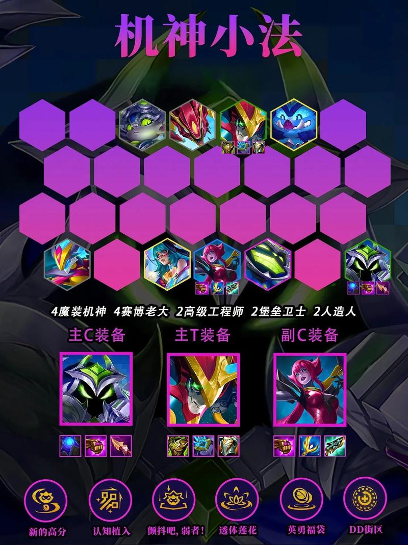 〖Two〗、星界四龙神体系核心成员为杰斯、艾达丝、索拉卡、希瓦娜、泰拉、敖兴。该阵容以四龙神羁绊为核心,过渡阶段推荐使用金鳞沃利贝尔搭配御金师之杖、德莱文之斧等装备,通过金鳞龙与玉龙羁绊的组合快速积累经济。关键装备鬼索的狂暴之刃可助力阵容轻松升至9人口。