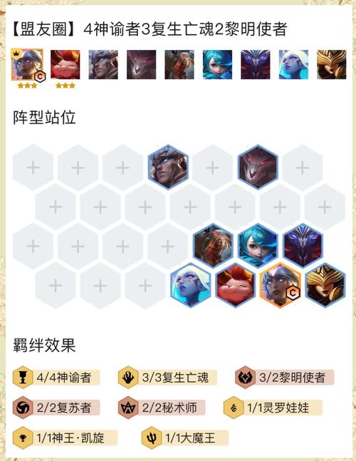 阵容羁绊:推荐2仙灵、2龙珠、2北地、2护卫、2游侠、2换形师的组合。阵容组成:核心英雄包括迅箭、冰之箭、北地之盾、蛛后、星龙战神、逆鳞战姬。早期过度:使用2骑士、2游侠进行过度,冰之箭的装备可先给VN使用。