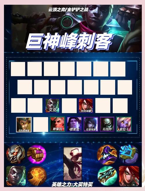 〖Four〗、金铲铲之战S10音浪刺客玩法搭配攻略如下:阵容构成 核心英雄:卡特琳娜、劫、伊芙琳、纳尔、妮蔻、莉莉娅、永恩、凯南、奇亚娜。羁绊构成 6音浪刺客:提供高额的暴击伤害和攻击速度。 4超级粉丝:为刺客们提供额外的攻击力和法术强度。 3KDA:增加团队的整体输出能力。