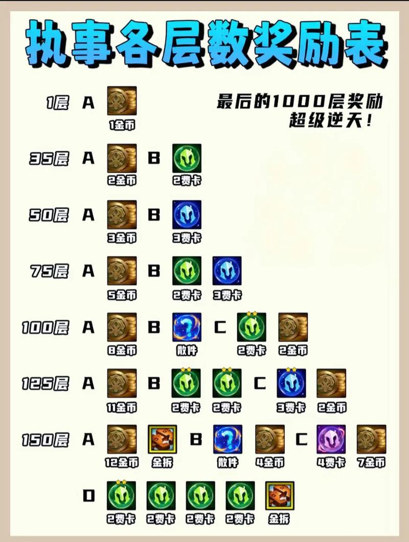 〖Four〗、-449层:金铲铲、金锅锅等高价值道具,以及光明装备和大量金币。458-499层:2星5费弈子、24金币等顶级奖励。500层以上奖励:500层:为特定弈子(如德莱文)准备的奖励,如5个职业纹章。550层:设计师推荐的体系内奖励,如为乐芙兰和蔚准备的装备。650层:三个金装、100金币和50次刷新机会。