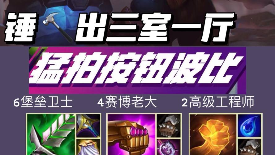 〖Six〗、金铲铲之战S14猛拍按钮波比阵容攻略:阵容核心 关键天赋:猛拍按钮,此天赋将波比从前排坦克转变为主要输出核心。羁绊组合:6堡垒+4赛博老大,提供高额双抗、体型变大效果以及回血与法强加成,增强波比的生存能力和输出范围。