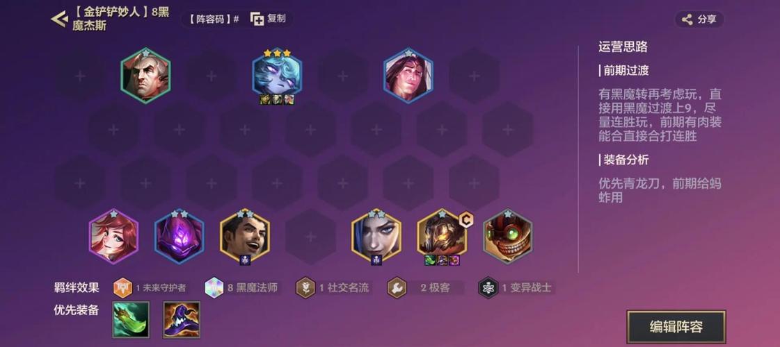 首先,5黑玫九五阵容被提及为强度比较高的运营阵容之一。这套阵容以黑玫先知和蚂蚱为核心,蚂蚱作为5费卡,在8人口时若能D到1星蚂蚱并搭配足够的前排质量,便能稳定过渡到9人口。此外,阵容中的其他角色如盖伦或乌鸦等,也能在特定情况下发挥重要作用。其次,6极客阵容也备受推崇。