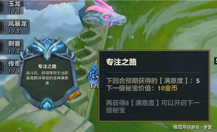 〖Three〗、胜利之路(金色):适合开局强势(如3怒翼龙+2星瑟提),每胜利一次+4满意度。 隐忍之路(紫色):开局弱势时选取连败,每失败一次+5满意度。 其他路线如均衡之路(固定+3)或专注之路(羁绊加成)也可根据局势选取。目标:积累100层满意度,开启龙之秘宝后刷新奖励,优先获取「高级月光」。