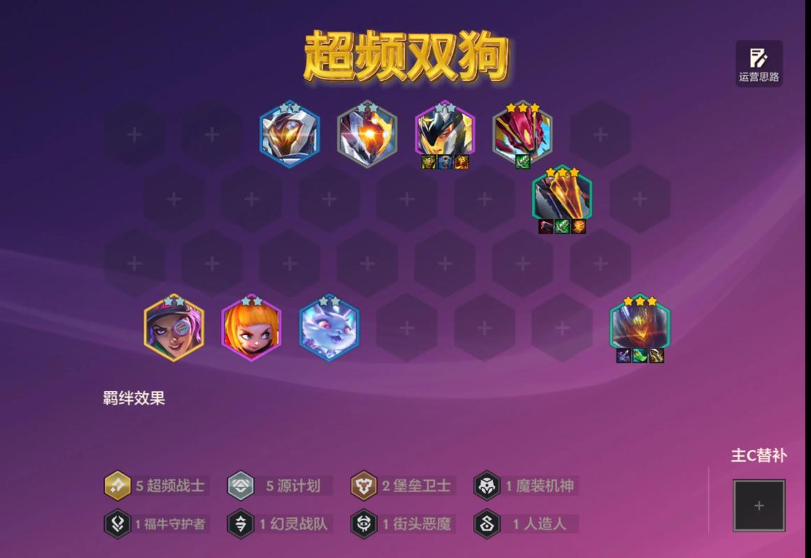 金铲铲S10朋克老鼠阵容玩法攻略(赌狗第二套)如下:阵容组成 核心羁绊:4朋克(金克斯、潘森、老鼠)+ 2护卫(宝石)+ 4急射(女警、亚菲、奥巴马)。在有一个天选羁绊的情况下,7人口即可成型。装备分配 主坦潘森:主要携带肉装,如狂徒、反甲、龙牙等,以提升其坦度。
