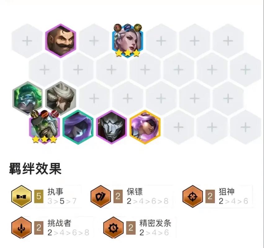 〖Six〗、金铲铲之战海克斯斗枪玩法攻略 阵容选取 金铲铲之战中海克斯斗枪阵容主要由以下英雄组成:金克斯、赏金、蔚、机器人、狼人、挖掘机、大虫子、猴子。这些英雄能够形成2枪手、2海克斯、2虚空、6斗士的羁绊组合。这样的阵容兼具输出与控制,能够在战斗中发挥出强大的团队效应。