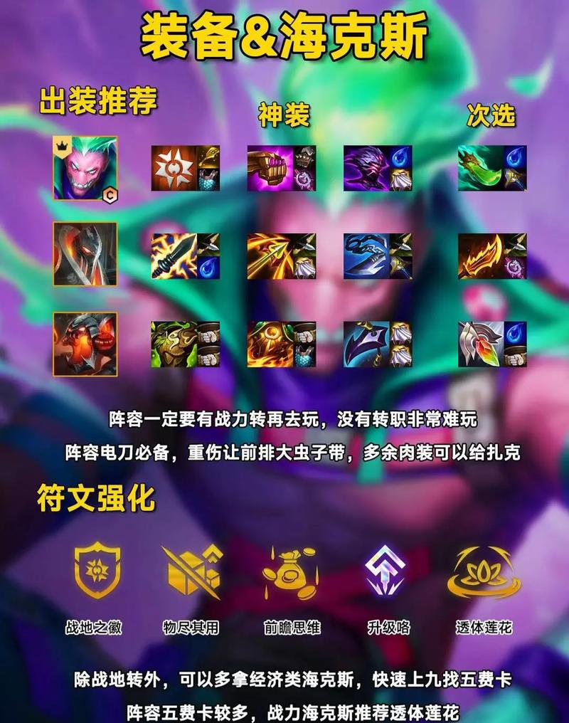 若转狙神,则组合为4狙神。在5人口时,优先收集所需卡牌,待三星寒冰与三星婕拉出现后,继续提升人口至高羁绊,以追求更高的战斗力与胜率。综上所述,金铲铲之战10辛迪加艾希玩法需要注重阵容构建、装备选取与运营策略的结合,通过合理规划,玩家可以提升胜率与吃鸡概率,享受游戏带来的乐趣与成就感。