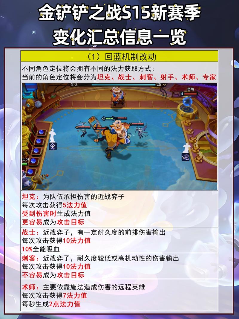 金铲铲之战S15赛季的爆料内容包括赛季主题、核心主题、新机制、英雄与羁绊、限定奇遇模式以及三星五费卡技能效果更新。赛季主题:S15赛季的主题为“天下无双格斗大赛”,主打热血近战风格。这一赛季将推出多个与“格斗”高度契合的皮肤系列和英雄,为玩家带来全新的游戏体验。